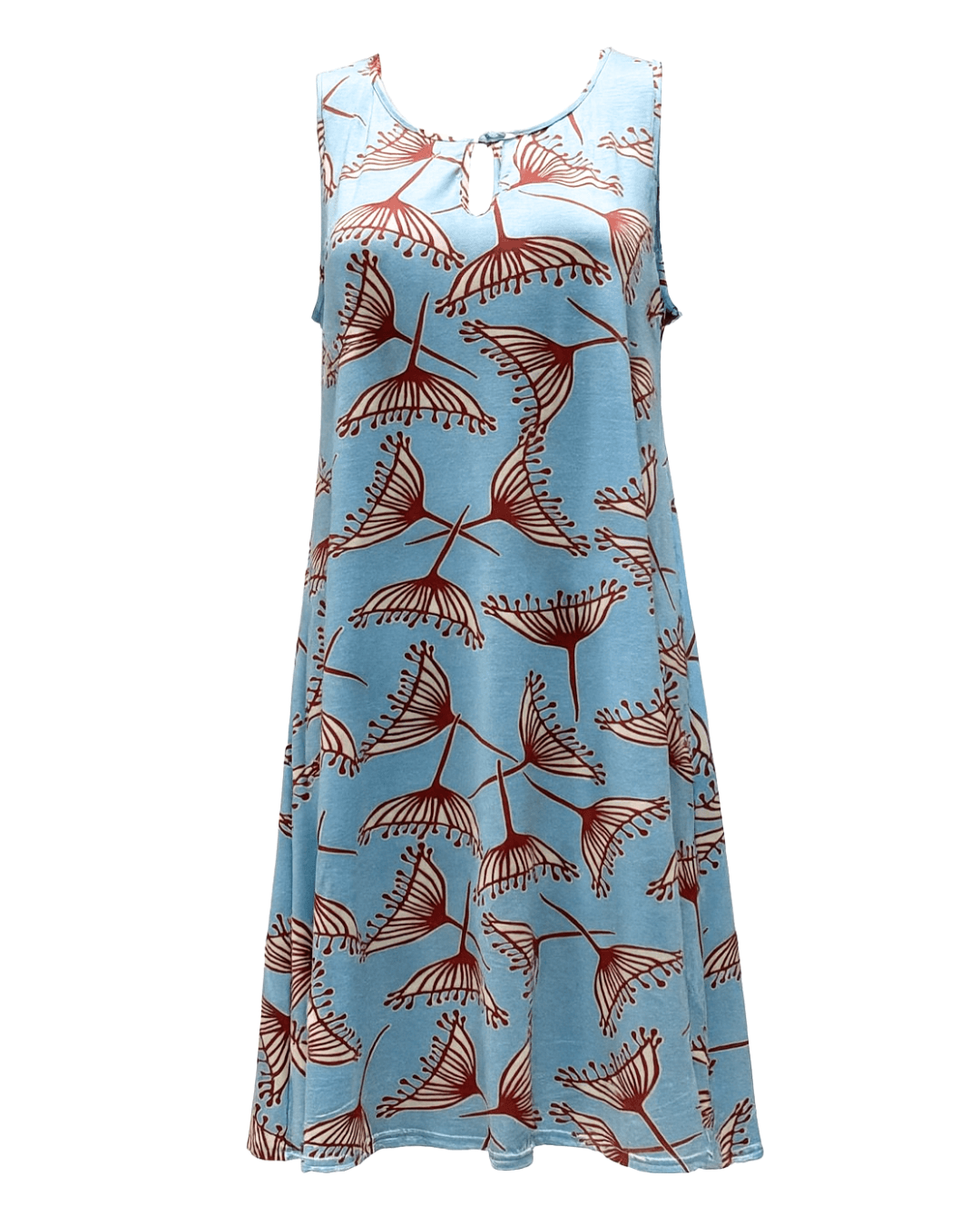 Model Lea Modra obleka ima udoben A-kroj, ki lepo pade ob telesu in omogoča prijetno nošenje tudi v vročih poletnih dneh. Obleka je primerna za vsakodnevne poletne aktivnosti, sprehode ob morju ali sproščene večerne izhode.